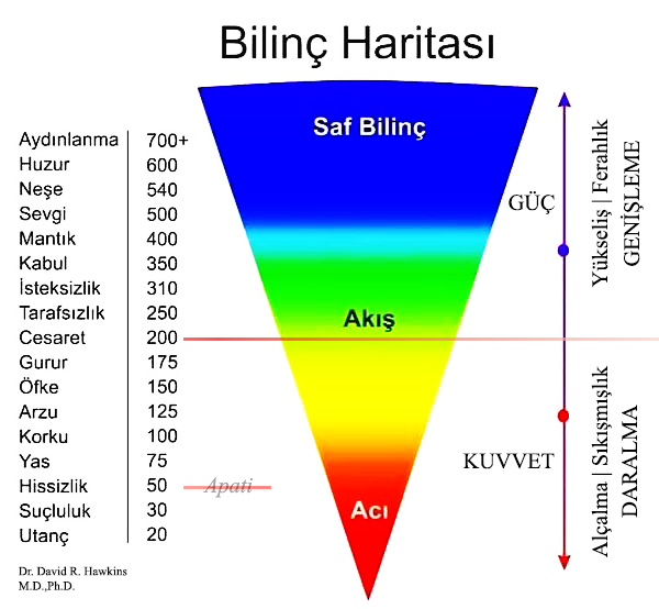Psikiyatrist & akademisyen Dr. David R. Hawkins kendisinin ortaya çıkarttığı Bilinç Haritası ölçeğini anlattığı kitabında, 200 kalibrasyonun altında olan insanların düşük farkındalık seviyesine sahip insanlar olduğunu belirtiyor. Ve dünyanın %85’inin 200 kalibrasyonun altında olduğunu söylüyor.