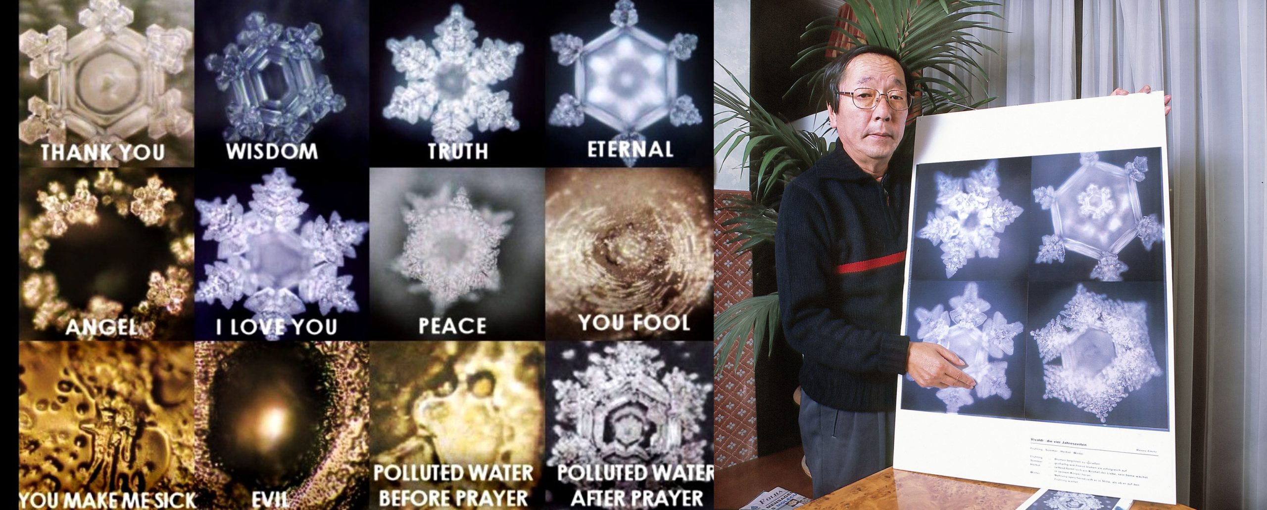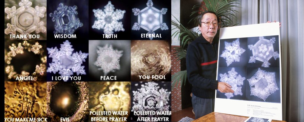Dr. Masaru Emoto’nun su kristalleri deneyi suyun maruz kaldığı düşünceler, duygular ve çevresel etkilere tepki verdiğini öne süren popüler bir çalışmadır. Emoto, suya farklı mesajlar, sözler ve müzikler uygulayıp ardından suyu dondurarak mikroskop altında kristallerini incelemiştir. Deneyde olumlu sözlere ve duygulara maruz kalan su örneklerinin daha düzenli ve estetik olarak güzel kristaller oluşturduğu, olumsuz sözler ve duyguların ise çirkin, düzensiz kristallere neden olduğu sonucu çıkmıştır.